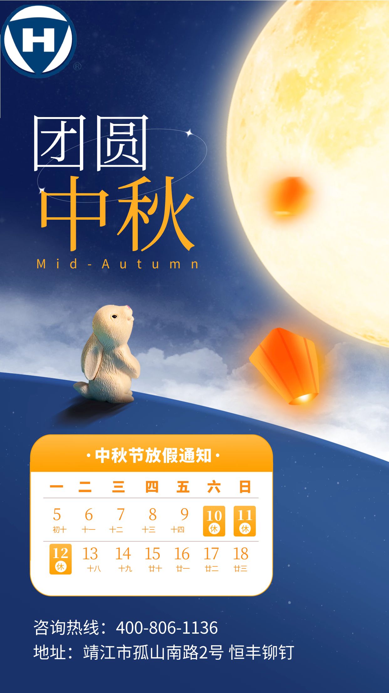 2022年恒豐鉚釘中秋節(jié)放假通知