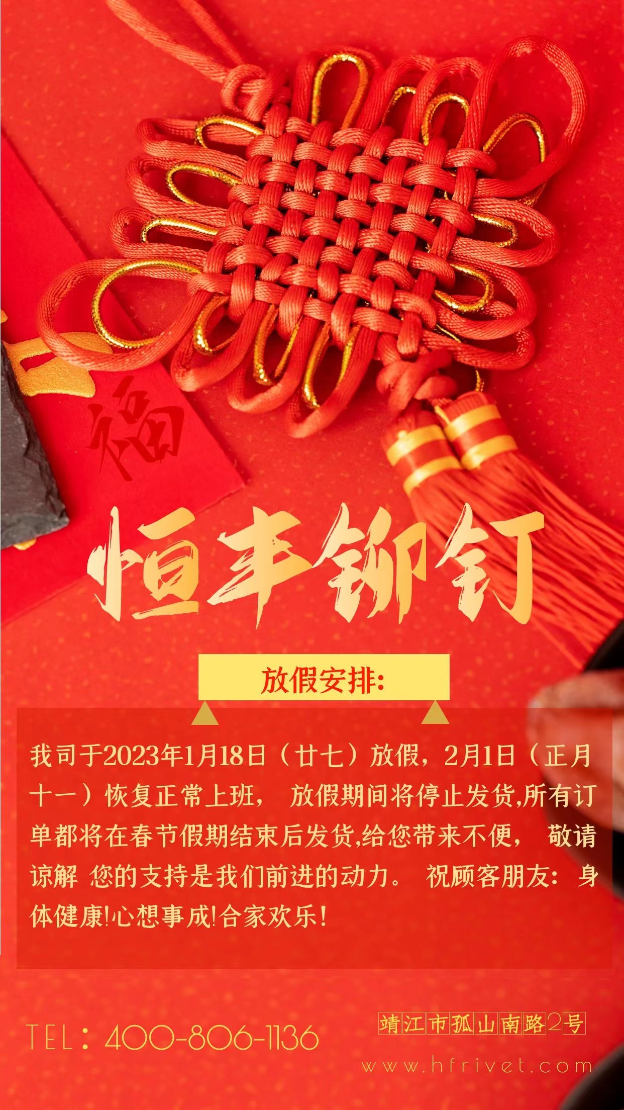 - 2023年恒豐鉚釘春節(jié)放假通知