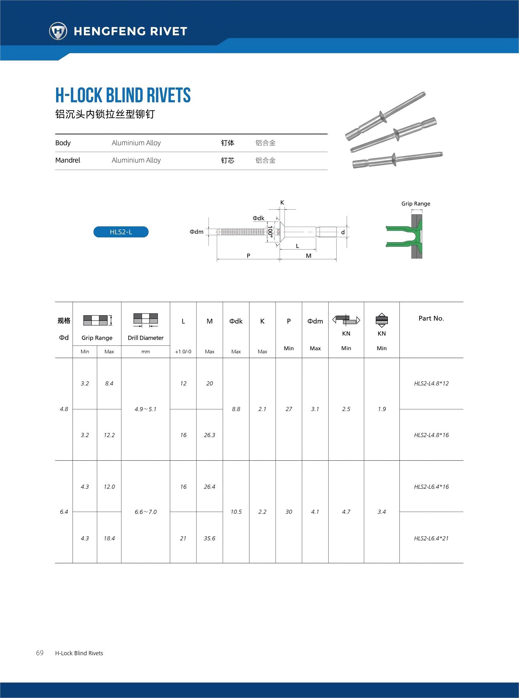 鋁/鋁 | 扁圓頭 沉頭型 | |